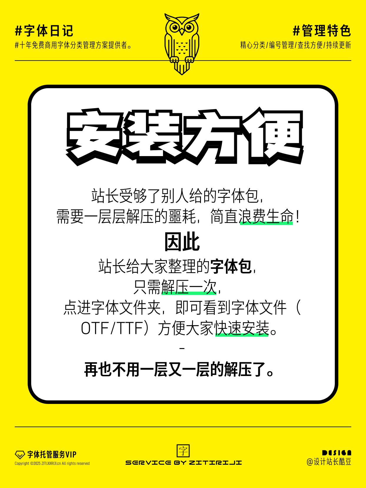 我(酷coo豆)做“字体日记网”,最初是因为看到太多人因忽略版权字体使用,收到律师函索赔,实在心疼;